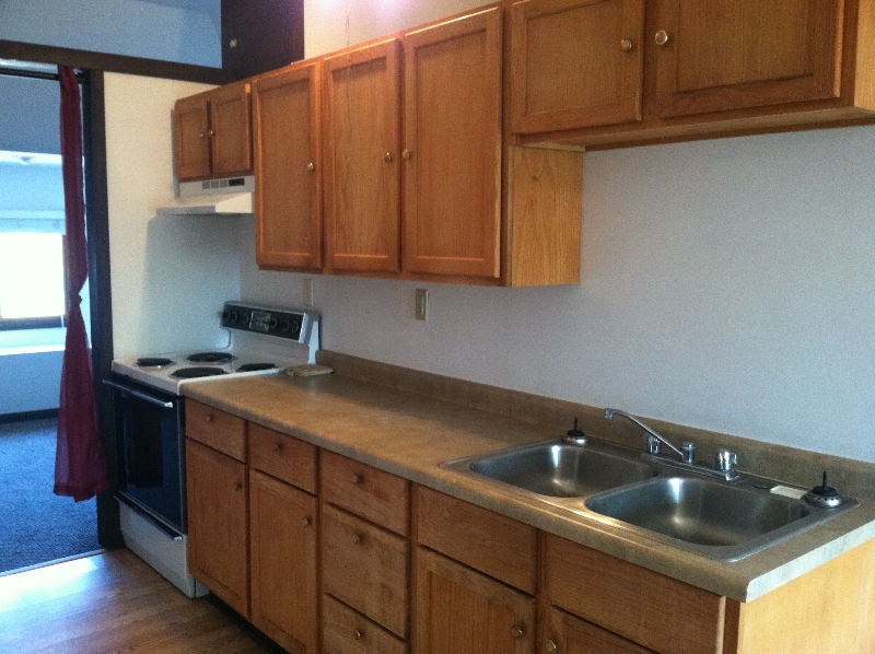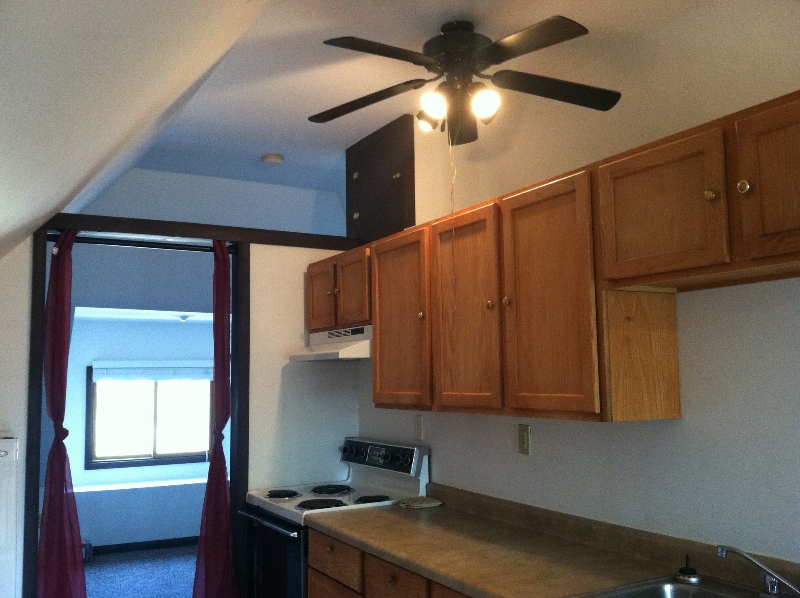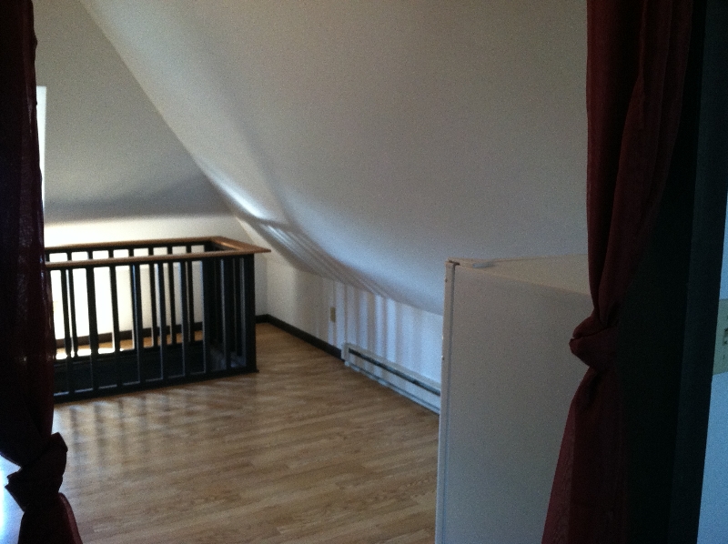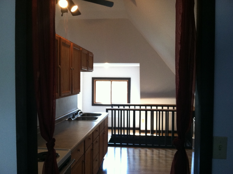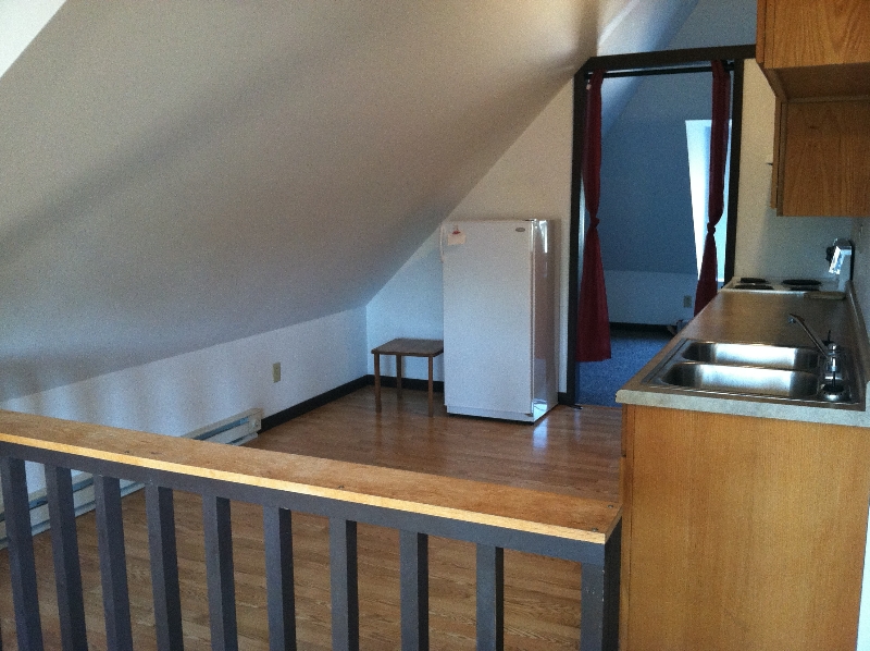 The third floor is a newer studio apartment with a roomy full bath, full kitchen with dining area, large bedroom/living room area and a study/office area, with a spectacular view of the Portage Canal.